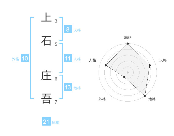 上石 庄吾さんの総格は21画の5点!