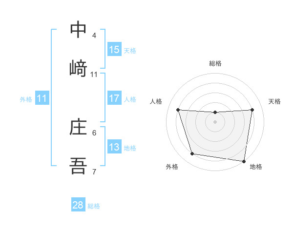 中﨑 庄吾さんの総格は28画の1点!