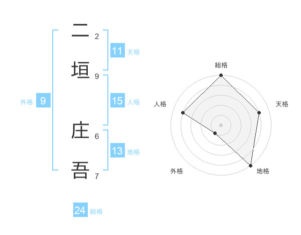 二垣 庄吾さんの総格は24画の5点!