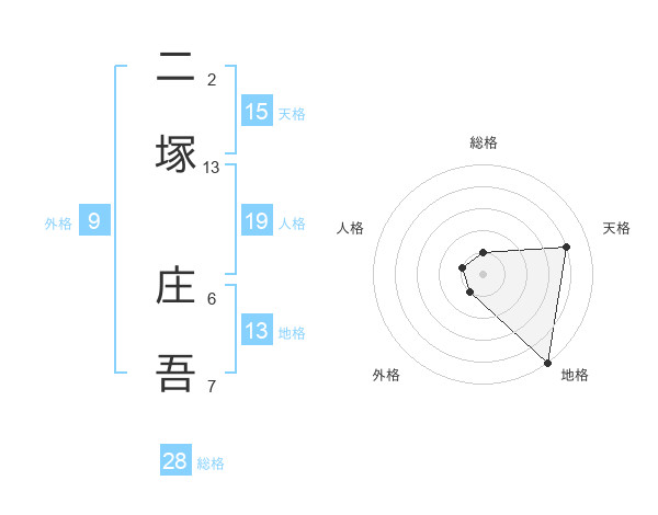 二塚 庄吾さんの天格は15画の4点!
