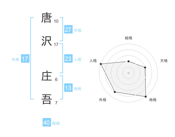 唐沢 庄吾さんの外格は17画の4点!