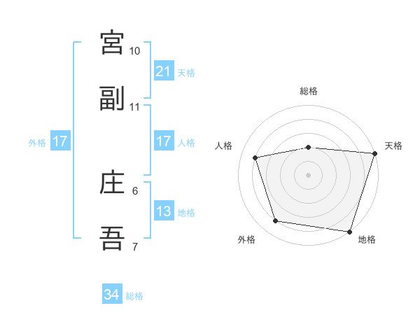 宮副 庄吾さんの総格は34画の2点!