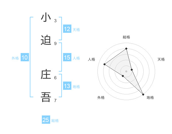小迫 庄吾さんの天格は12画の1点!