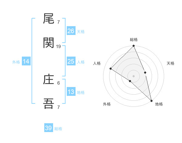 尾関 庄吾さんを姓名の画数から五運を鑑定