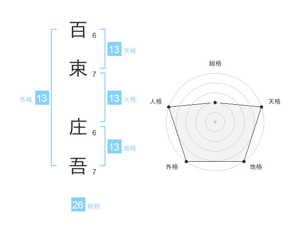 百束 庄吾さんを姓名の画数から五運を鑑定
