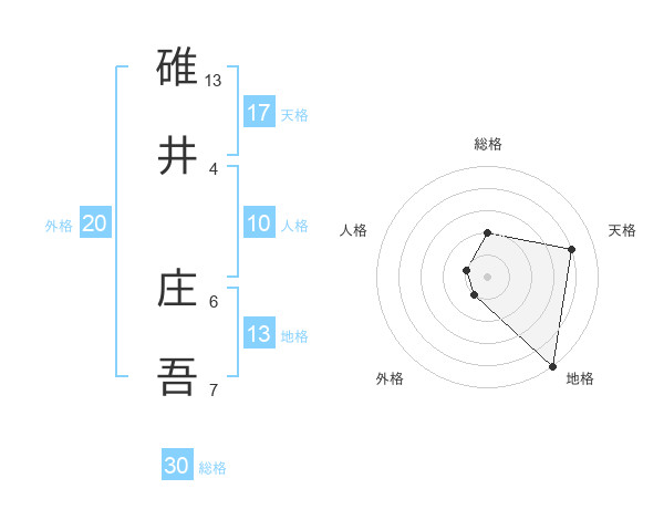 碓井 庄吾さんを姓名の画数から五運を鑑定