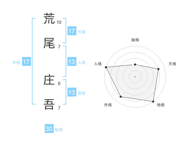 荒尾 庄吾さんの天格は17画の4点!