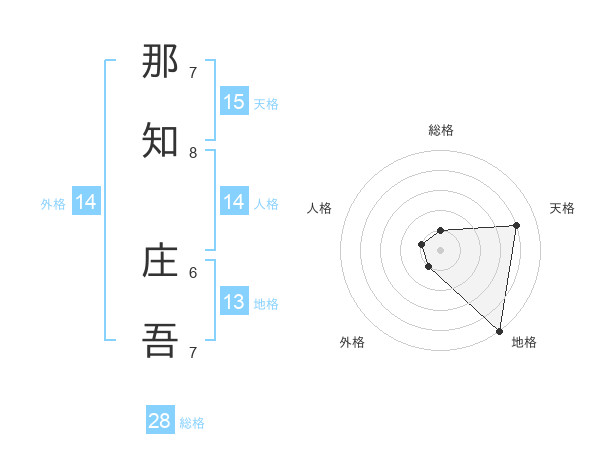 那知 庄吾さんの天格は15画の4点!