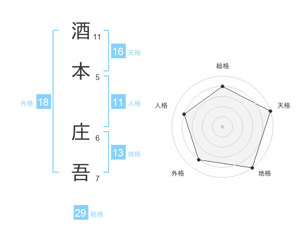 酒本 庄吾さんを姓名の画数から五運を鑑定