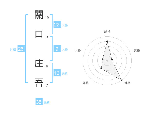 關口 庄吾さんの総格は35画の4点!