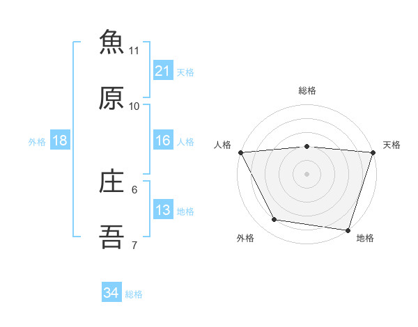 魚原 庄吾さんの天格は21画の5点!