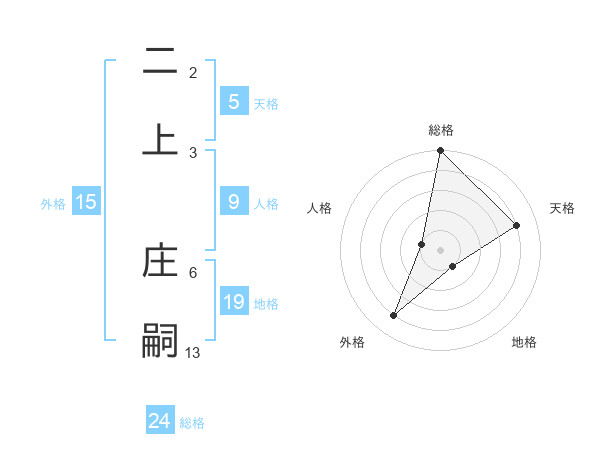 二上 庄嗣さんを姓名の画数から五運を鑑定