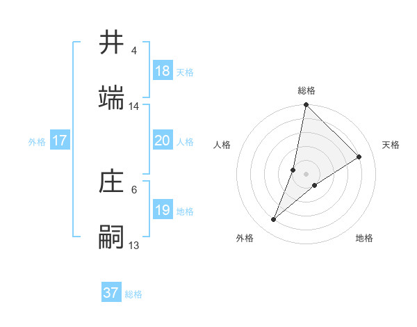 井端 庄嗣さんを姓名の画数から五運を鑑定