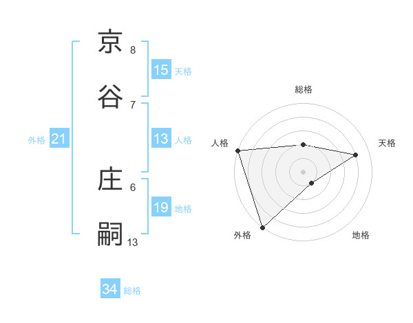 京谷 庄嗣さんの天格は15画の4点!