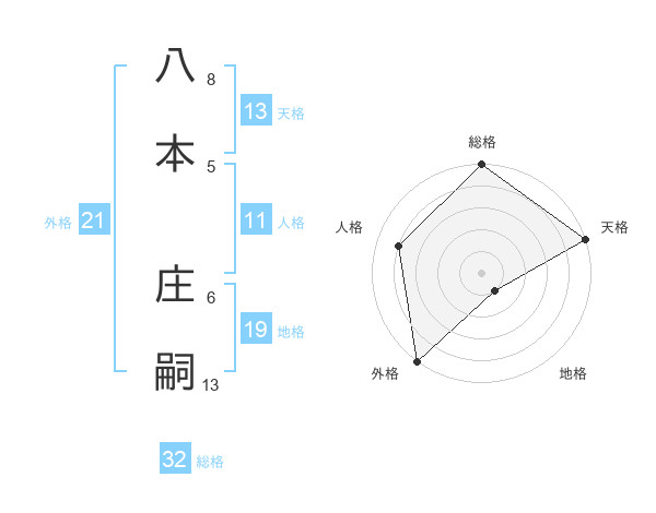八本 庄嗣さんの総格は32画の5点!