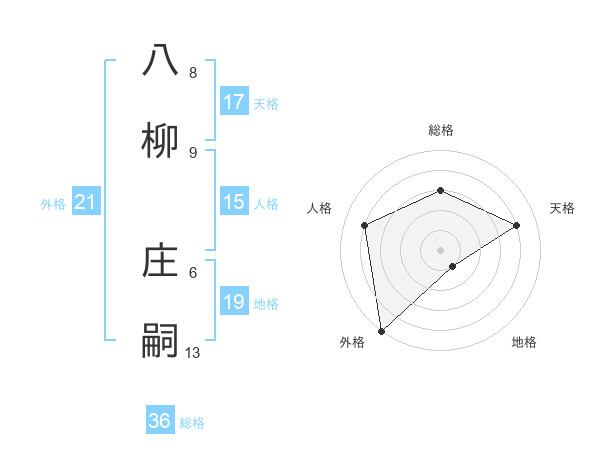 八柳 庄嗣さんを姓名の画数から五運を鑑定