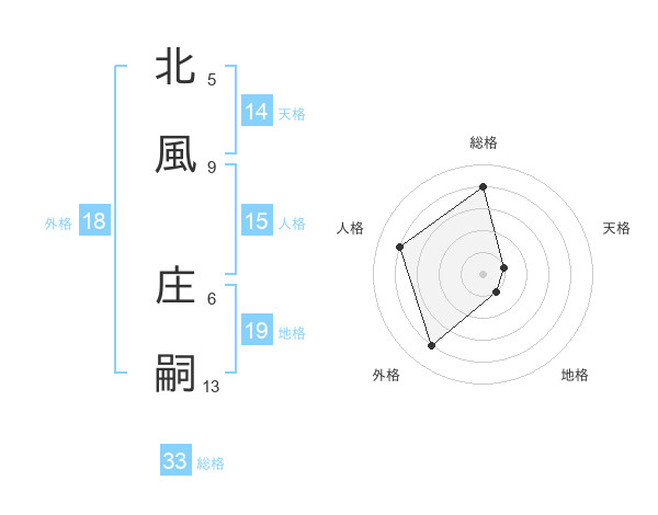 北風 庄嗣さんを姓名の画数から五運を鑑定