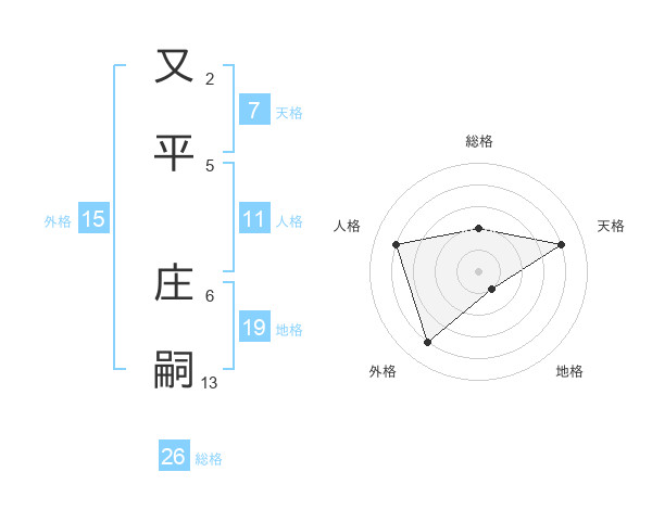 又平 庄嗣さんの外格は15画の4点!