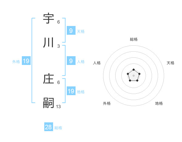 宇川 庄嗣さんの総格は28画の1点!