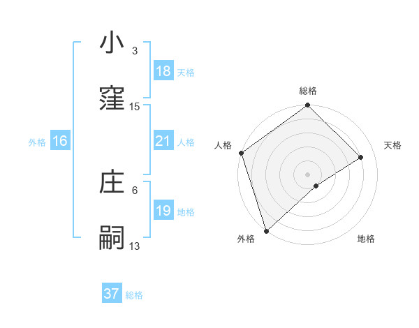 小窪 庄嗣さんの総格は37画の5点!