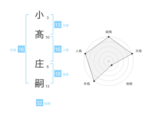 小髙 庄嗣さんの総格は32画の5点!