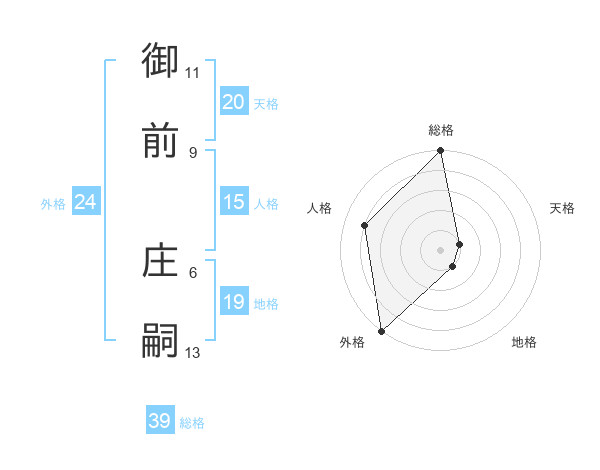 御前 庄嗣さんを姓名の画数から五運を鑑定