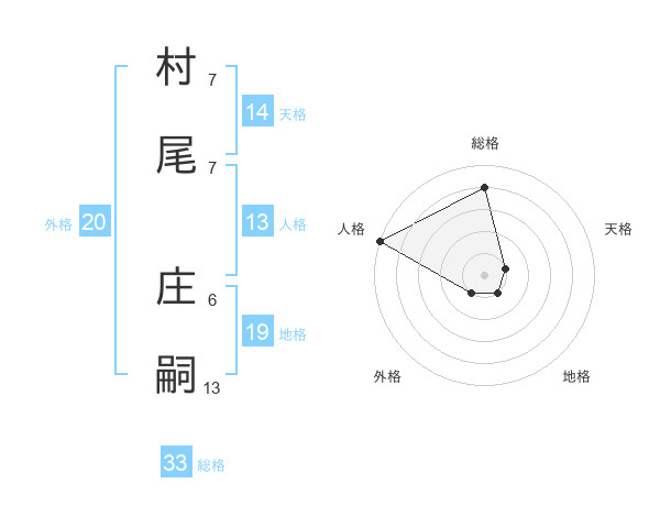 村尾 庄嗣さんの総格は33画の4点!