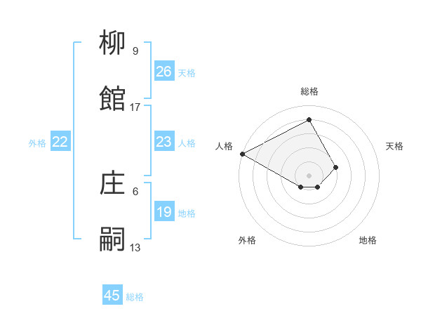 柳館 庄嗣さんを姓名の画数から五運を鑑定