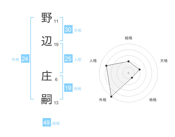 野辺 庄嗣さんを姓名の画数から五運を鑑定