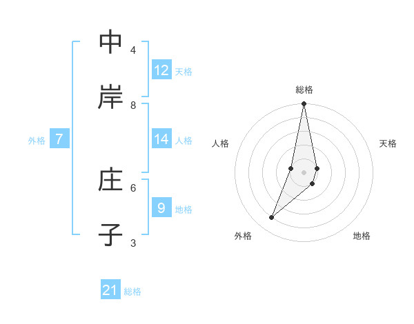 中岸 庄子さんを姓名の画数から五運を鑑定
