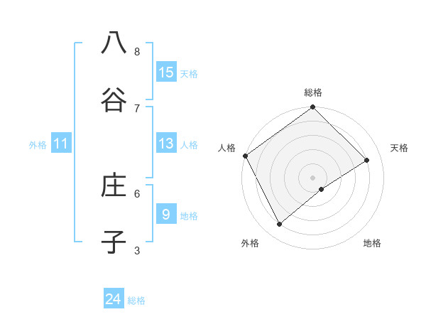 八谷 庄子さんの総格は24画の5点!