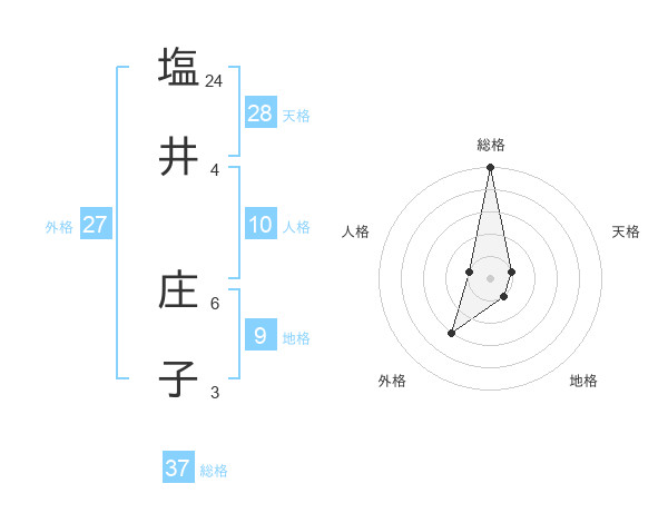 塩井 庄子さんの総格は37画の5点!