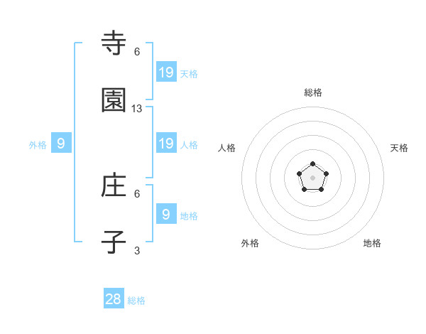 寺園 庄子さんを姓名の画数から五運を鑑定