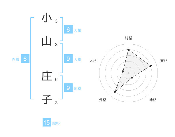小山 庄子さんの総格は15画の4点!