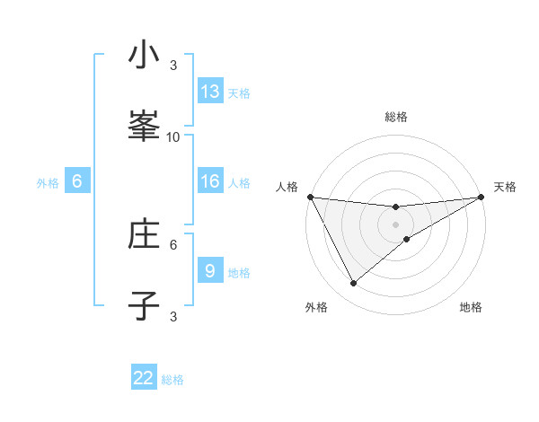 小峯 庄子さんを姓名の画数から五運を鑑定