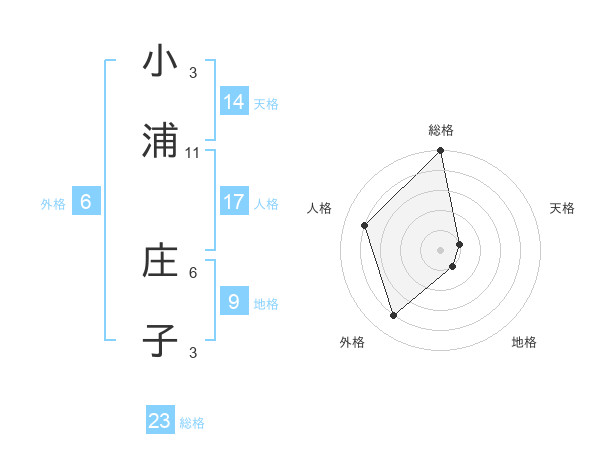 小浦 庄子さんの総格は23画の5点!