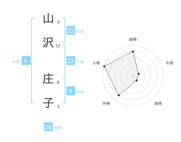 山沢 庄子さんを姓名の画数から五運を鑑定