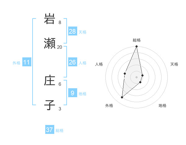 岩瀬 庄子さんの総格は37画の5点!