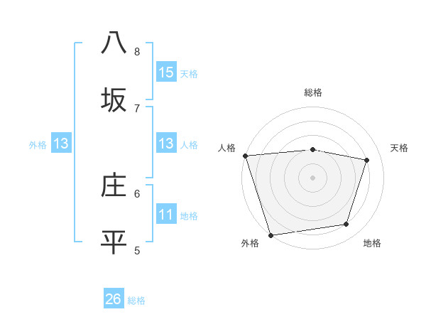 八坂 庄平さんを姓名の画数から五運を鑑定