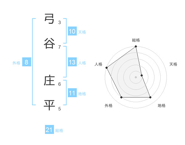 弓谷 庄平さんの総格は21画の5点!