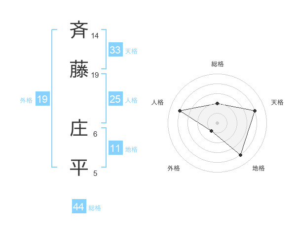 斉藤 庄平さんを姓名の画数から五運を鑑定