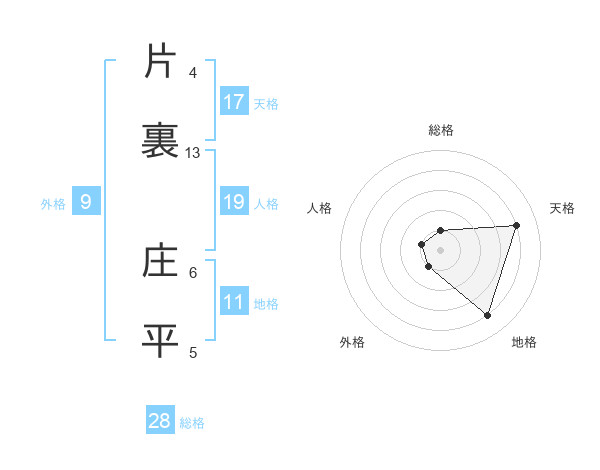 片裏 庄平さんの総格は28画の1点!
