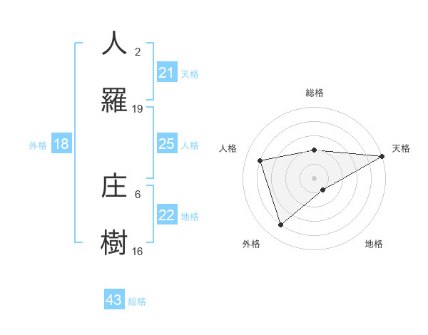 人羅 庄樹さんの天格は21画の5点!