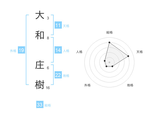 大和 庄樹さんを姓名の画数から五運を鑑定