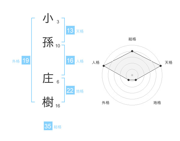 小孫 庄樹さんの総格は35画の4点!