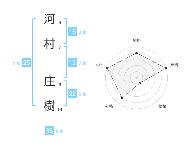 河村 庄樹さんの総格は38画の4点!