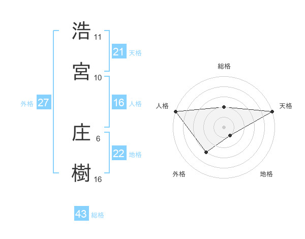 浩宮 庄樹さんの天格は21画の5点!