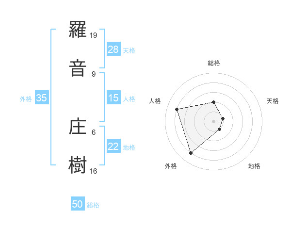 羅音 庄樹さんを姓名の画数から五運を鑑定
