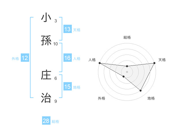 小孫 庄治さんを姓名の画数から五運を鑑定