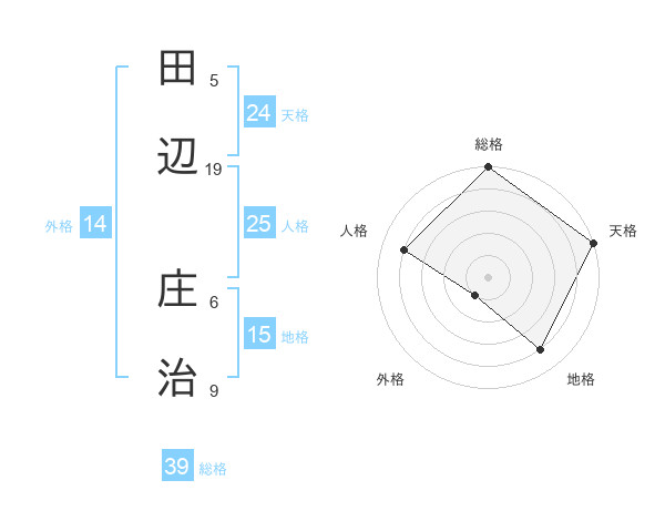田辺 庄治さんの天格は24画の5点!